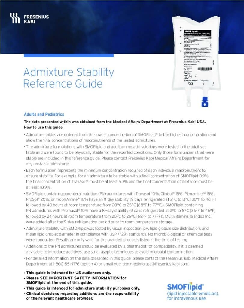 Admixture Stability Reference Guide for Adults and Pediatrics